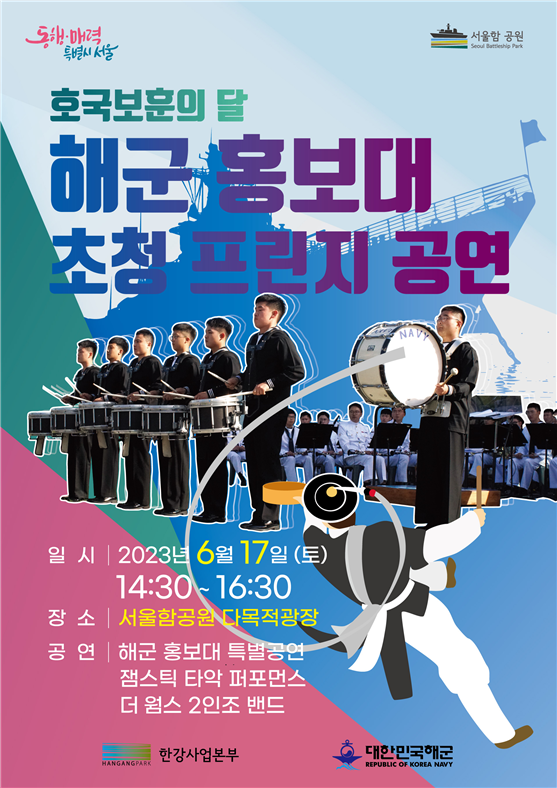 서울시 한강사업본부는 6월 ‘호국보훈의 달’을 맞아 해군홍보대와 함께하는 <해군홍보대 초청 특별공연>이 서울함공원에서 열린다고 밝혔다.