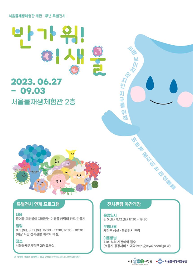 서울물재생체험관은 특별전시<반가워! 미생물>을 6월 27일(화)부터 9월 3일(일)까지 서울물재생체험관 2층 전시실에서 전시한다.