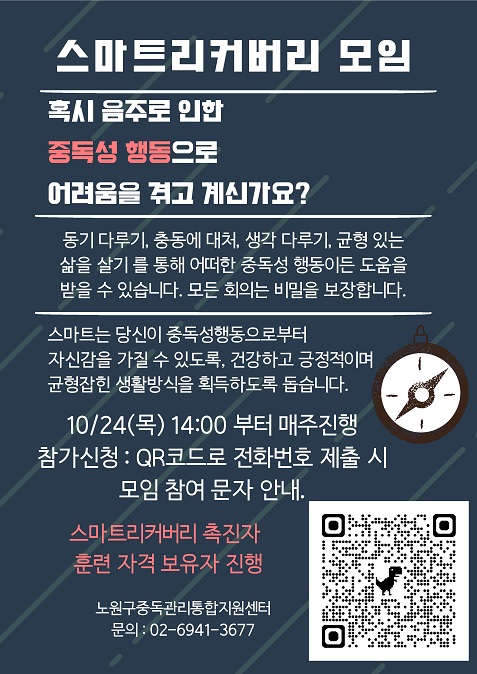 서울 노원구(구청장 오승록)가 중독문제를 겪는 주민이 건강한 일상을 회복할 수 있도록 <스마트 리커버리> 프로그램을 운영하고 있다고 밝혔다.